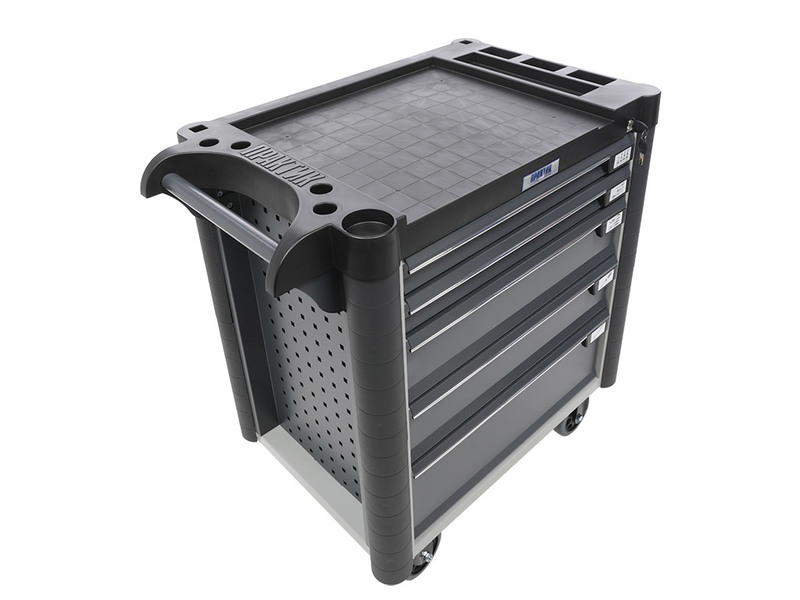 - Топ (пластик черного цвета) оснащён ложементами под инструменты для организации, хранения и удобства использования во время выполнения работ. Нагрузка на ТОП – 30 кг